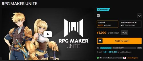 RPG MAKER UNITEが90%引きの1,030円となっています。