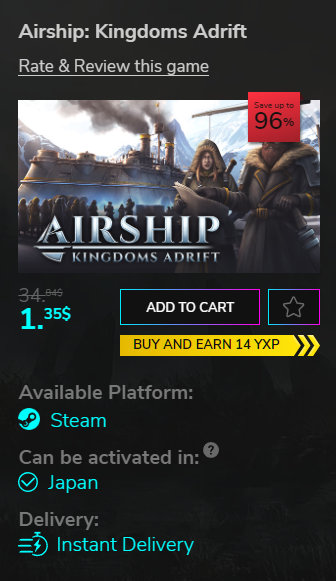 YuplayでAirship: Kingdoms Adriftが96%引きの$1.35