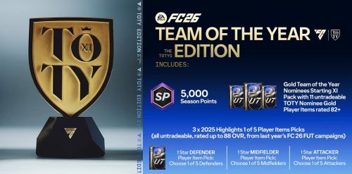 ・3つの2025ハイライト選手アイテムピック5名から1名(すべてトレード不可、最大OVR 88、昨年のEA SPORTS FC 26 Football Ultimate Teamキャンペーン§より):