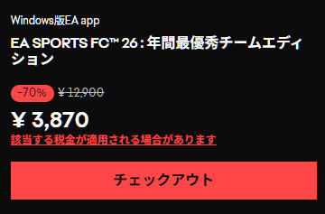 FC 26 TOTY Edition/年間最優秀チームエディションが70%引きの3,870円となっています。