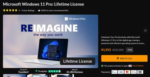 Fanaticalにて再びWindows 11 Proが1,953円となっています。