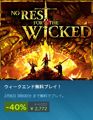 No Rest for the Wickedが40%引きの2,772円となっています。