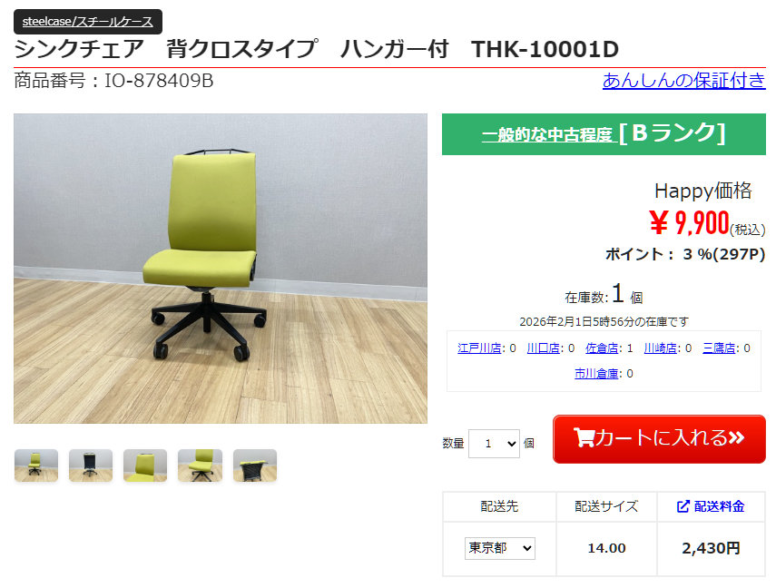 定価10万円ほどのsteelcaseシンクチェアは9,900円。
