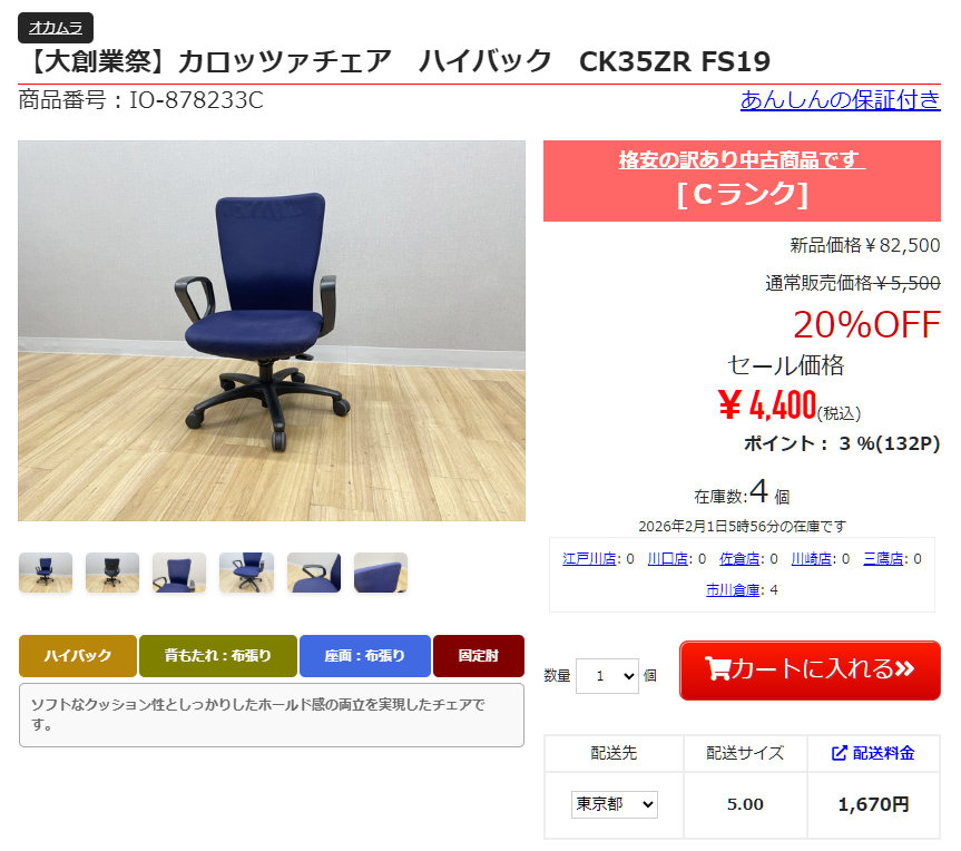 オカムラ カロッツァチェア ハイバックなら4,400円。