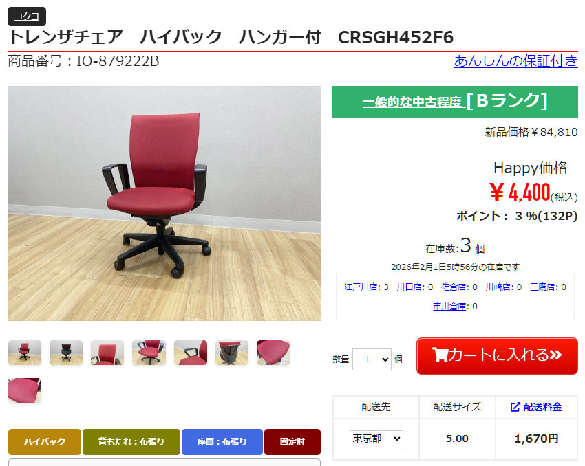 中古品なので程度は様々ですし、体格・姿勢によって最適なチェアも変わってきます。