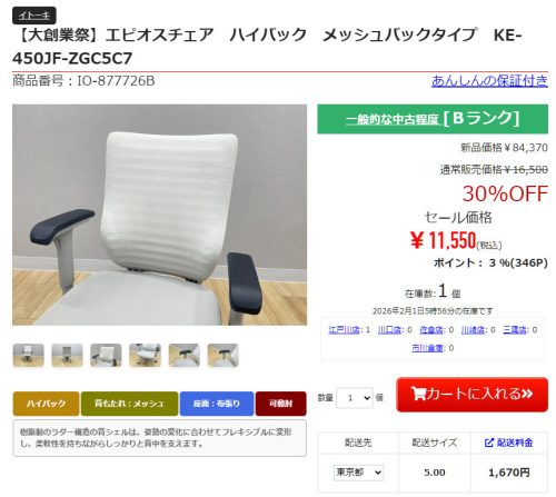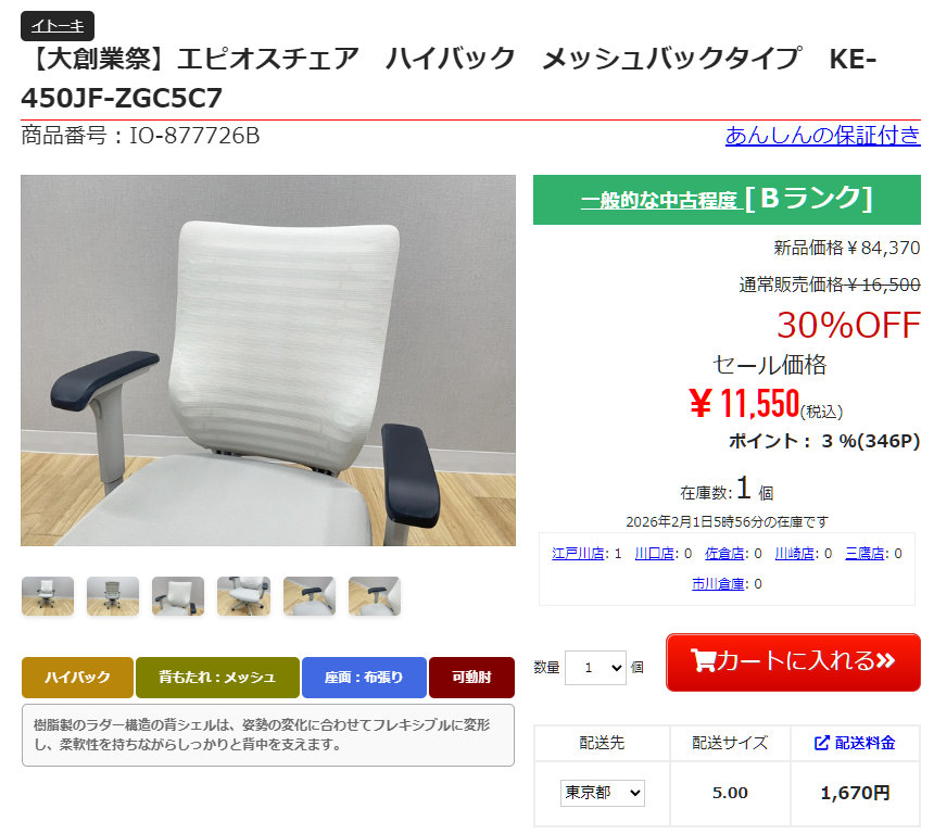 イトーキのエピオスチェア ハイバックは1万1,550円。