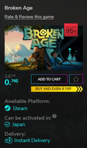 Broken Ageが95%引きの0.78ドルとなっています。