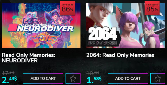 ・Read Only Memories: NEURODIVER/やや好評——$2.43