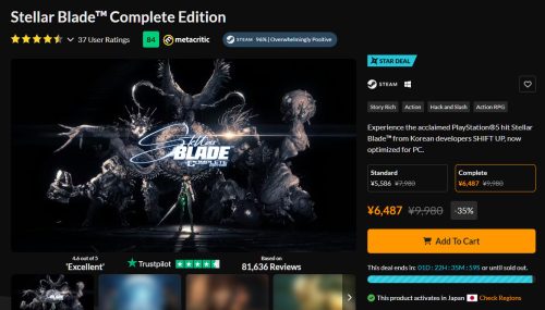 Stellar Blade Complete Editionが35%引きの6,487円となっています。