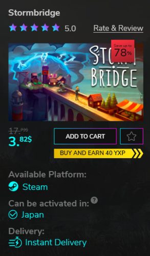 先日リリースされたばかりの新作 Stormbridge が78%引きの3.82ドルとなっています。