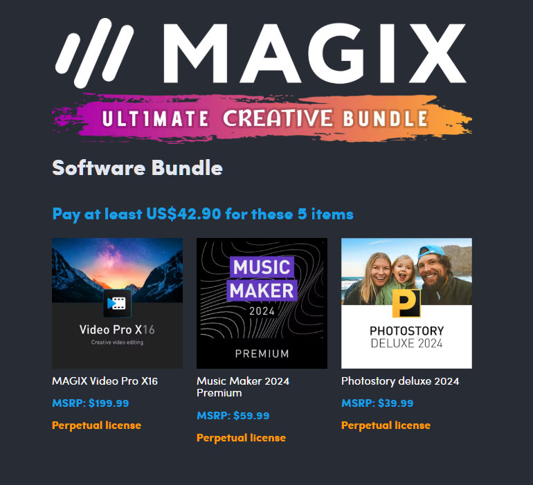Humble Software Bundle: MAGIX Ultimate Creative Bundle~$42.90で5本だけどVegasじゃない | PC Gamer リスト更新中