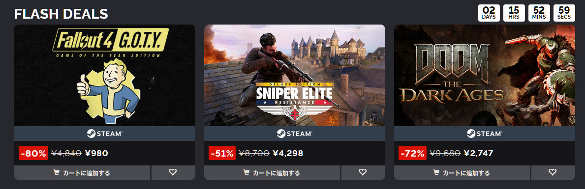 イギリスのDL販売サイト GMG にてFlash Dealsで3本の作品がお安くなっています。