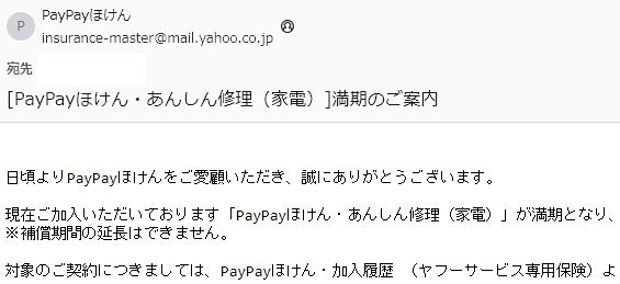 先月末に見覚えのない保険満期のお知らせが届きました。