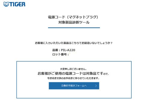 マグネット着脱式電源コード無償交換開始のお知らせ