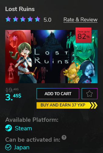 Lost Ruinsが82%引きの3.45ドルとなっています。