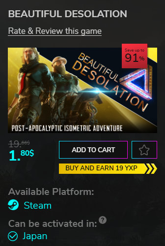 YuplayでBEAUTIFUL DESOLATIONが$1.80 | PC Gamer リスト更新中