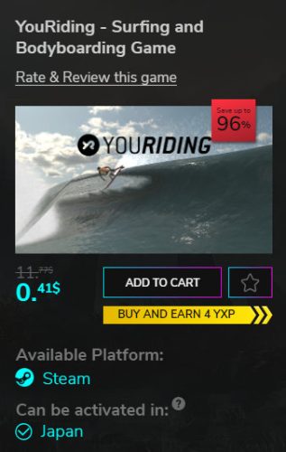 YuplayでYouRiding – Surfing and Bodyboarding Gameが$0.41 | PC Gamer リスト更新中