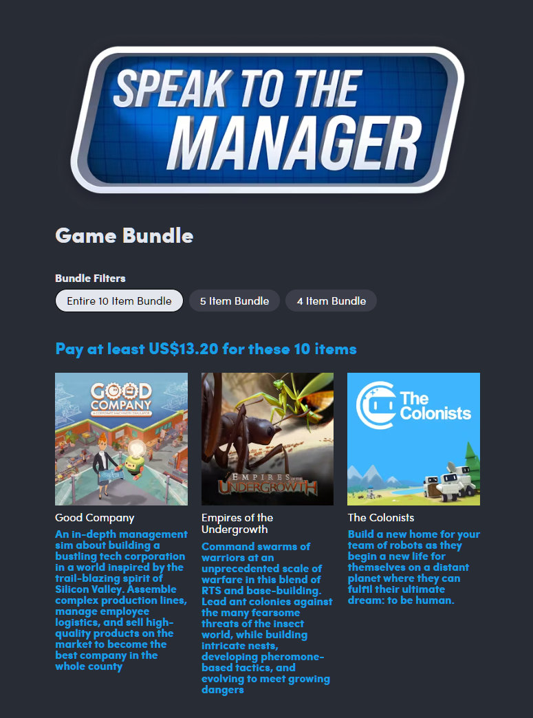 HumbleにてSpeak to the Manager Bundleを開催しています。