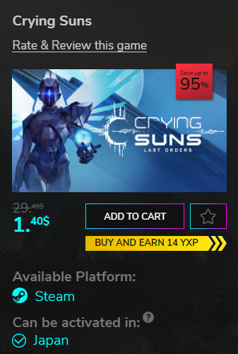 Crying Sunsが95%引きの1.40ドルとなっています。