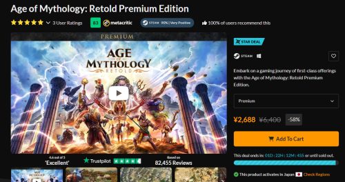 Age of Mythology: Retold Premium Editionが58%引きの2,668円となっています。