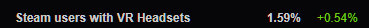 Steamユーザーのうち VRヘッドセット を所有されている方は1.59%