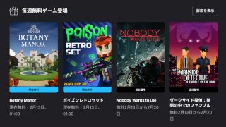 Epic Games Storeにて2本の作品を無料で配っています。2/13午前1時まで。・Botany Manor/非常に好評・ポイズンレトロセット/非常に好評Steamユーザーレビューを参考にすると、Botany Manorは非常に好評...