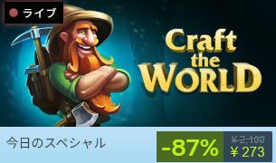 Steamの日替わりスペシャルにてCraft The Worldが87%引きの273円となっています。2/26まで。Craft The Worldは非常に好評。ドワーフ達を指示して拠点を作成し、敵の襲来に備える2Dサンドボックス。日本語UI...